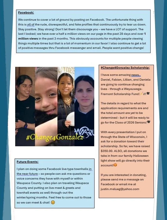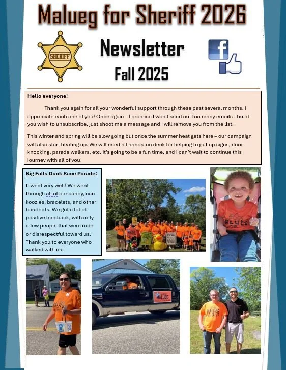 A page ran by Officer Justin Malueg, that focuses on Community Engagement, First Responder Appreciation & Support, Highway Safety, Mental Health, and Drug & Alcohol Addiction - who also just happens to be running for Waupaca County Sheriff⭐️👮🏻♂️🚓